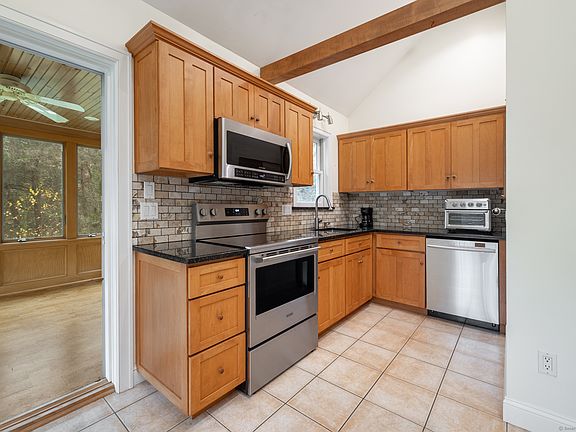 Discover the perfect blend of comfort and tranquility in this inviting 3 bed, 1.5 bath home nestled on 7+ acres where the soothing sounds of a babbling brook provide a serene backdrop to everyday living. The home is flooded with natural light and features beautiful hardwood floors, creating a warm and welcoming atmosphere. Embrace indoor-outdoor living with a wraparound porch that invites you to savor your morning coffee or unwind as the sun sets over your private acreage. The bright and airy sunroom offers an ideal space for relaxation, reading, or enjoying the changing seasons, while the living room's cozy fireplace creates the perfect gathering spot for family and friends. The property includes an oversized 2-car detached garage, complete with a versatile loft space perfect for crafting, woodworking, or additional storage. The loft features a wood-burning stove, giving the space the potential to be a cozy year-round workspace or studio. With the prep work done, future homeowners can truly make it their own by taking advantage of expanding the living space between the home and the garage as the foundation already exists. Radiant heated floors are plumbed in the main bath and an extra zone for heating is available for anyone looking to add additional living space or to turn the 3-season room into a 4-season oasis! Schedule your showing today and experience the tranquility of country living.