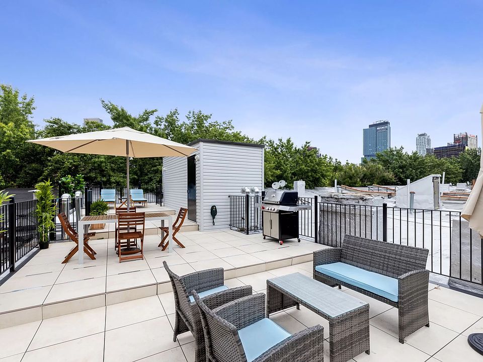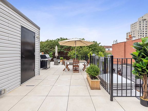 Private 830 Sq Ft roof deck with Weber Genesis 62" grill!! Access from inside the apartment. Other units in the building sold and closed. Comparable recent closed sale at $2.4mm. 99 Saint Marks Place, #3, Brooklyn, NY 11217. Old-world grandeur restored and transformed for today's lifestyle. This extra-wide historic Boerum Hill townhouse is redeveloped into 3 condo units outfitted with state-of-art infrastructure, green heating / cooling technology and fire sprinkler system. Building Features - Incredibly low common charges and real estate taxes. - Building entry system by Ring with remote opening capability using smart-phone for packages. - Currently zoned for P.S. 282 Park Slope school. Location - Nestled on a tranquil tree-lined townhouse block. - Easy access to multiple subway lines at Barclays Center and the 4th Avenue. - Proximity to wonderful restaurants at the 5th Avenue and Smith Street. Unit PH - Three Bedroom & Two Bathrooms (Master bedroom ensuite with walk-in closet) - Living / Dining Room with open kitchen - Laundry Closet with washer and vented gas dryer - 1269 sq ft Ceiling height from 8'10" in the bedrooms to lofty 10'8'' in the living room KITCHEN - Quartz countertops and island with waterfall. - Miele 30" refrigerator - Bertazzoni 30" gas range, vented microwave and dishwasher - Summit wine refrigerator. - Hansgrohe faucet. BATHROOMS - Hansgrohe fixtures, Toto toilet and Porcelanosa vanity. - Master bathroom in white veined marble and gray porcelain. - Kohler bathtub in second bathroom. FLOORING AND MILLWORK - Solid 5" Brazilian oak (also known as Tauari) flooring - Baldwin Reserve door hardware in venetian bronze. INFRASTRUCTURE UPGRADES - LG Split Cooling and back-up heating. Individual gas heat boiler and hot water heater. - All new water supply, sprinklers, upgraded gas, 100A electrical, and plumbing lines. - Energy efficient windows by Anderson and Crystal. Legal Disclaimer: This is not an offering; the complete offering terms are in an offering plan available from File No. CD21-0333