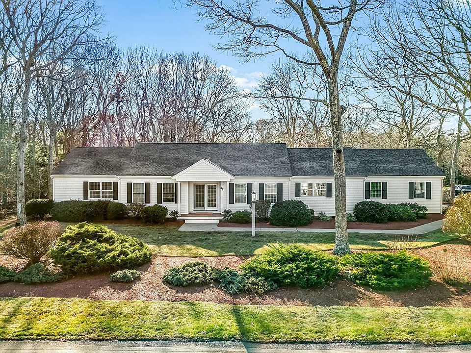 Nestled in the sought-after Green Pond Estates, one mile from pristine ocean beaches, this delightful 3-bedroom, 2-bath ranch-style home offers a spacious open floor plan and tasteful finishes. The open concept living room, anchored by a cozy gas fireplace, and the adjacent dining area are bathed in light thanks to a soaring vaulted ceiling. Just off the living area, a sun-filled three-season room extends the living space. The well-appointed kitchen features abundant counter space and plenty of storage. A bonus room, located off the kitchen and living areas, offers potential for a formal dining room, home office, or sitting area. The home boasts three generously sized bedrooms, including a serene primary suite with ample closet space and a private bath. Further highlights include a brand-new whole-house generator for peace of mind during storms, a two-car garage with plenty of space for vehicles and storage, and a lovely manageable corner lot yard. Green Pond Estates offers an array of amenities, including two community pools (one indoor, one out), two tennis/pickleball courts, an open field, and access to Nantucket Sound. Enjoy storage at the dinghy dock or kayak racks.