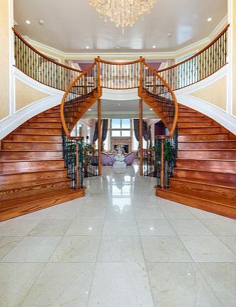 Larger-than-life all brick custom Estate home handsomely situated on a cul-de-sac in Monroe Township. An air of luxury characteristic of a 7 star hotel echoes throughout and features an abundance of exquisite features, amenities and style to enhance your daily living. A stunning double-height entrance foyer graced by an Aladdin Chandelier lift, Palatial windows, elegant iron butterfly oak staircases, exotic Brazilian Tigerwood Diagonal Flooring, Turkish Marble and Porcelanosa tiles. Intricately hand-painted wall finishes, skylights, 8-foot doors throughout including the many French doors. A sizable 1st Level Bedroom Ensuite is perfect for extended family and guests. Rooms feature 9ft high coffered ceilings highlighted by gold leaf tray-inlays,
