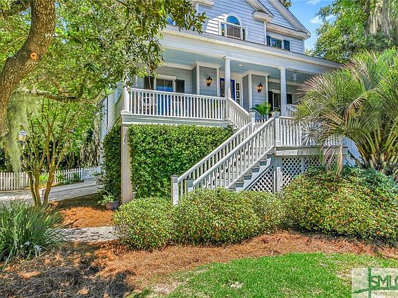 Pristine and private gated community on Wilmington Island is the setting for this exquisite neo-traditional two story home with all of the coastal charm you can imagine. This beautiful 3 bedroom, 3-1/2 bath features a gorgeous front porch overlooking the marsh, impressive entry foyer leading to spacious great room with fireplace, built-in bookshelves and recessed lighting, formal dining area, kitchen with breakfast area, pantry and all appliances, screened porch off great room with additional outside deck area perfect for entertaining. Hardwood flooring in lower level. 2 bedrooms upstairs with views over the marsh. Crown molding throughout home and high ceilings lend to the ambience. 2 car side entry garage and daylight basement area offer plenty of storage possibilities. Termite bond and security system. Enjoy the wonderful amenity of the Sapphire Island deep water community dock.