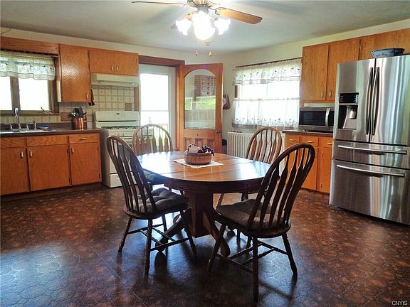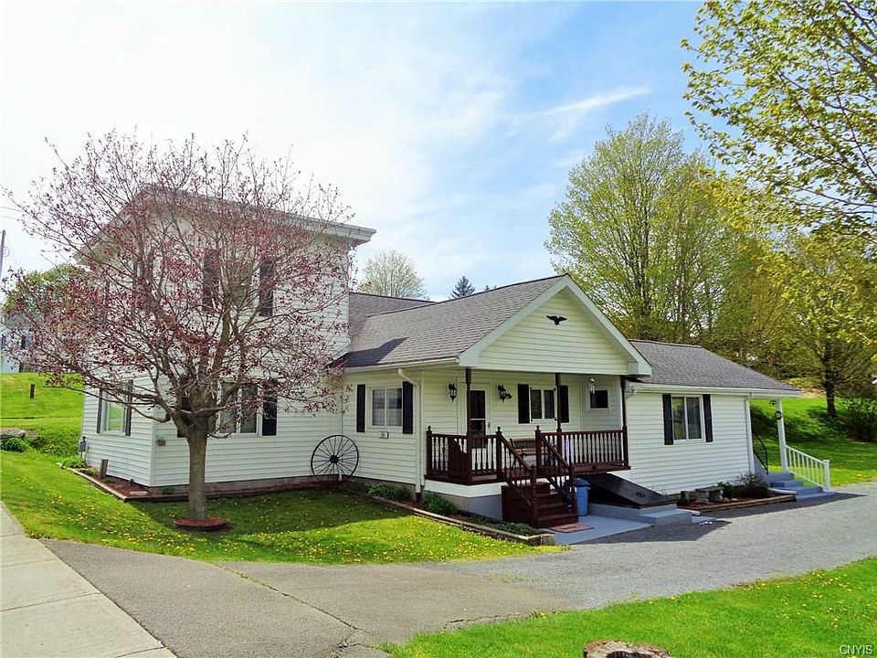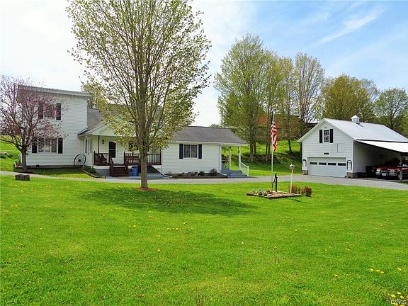 This beautiful home has been very well maintained for over 50 years by the same owner. Lots of open space with versatile living areas, featuring a large eat in kitchen, living room with gas fireplace, first floor bedroom or family room, nice office on the first floor. Second floor offers two large bedrooms, with open areas for other uses. Plus a large garage/barn with attached carport for all your hobbies and storage needs. Enjoy the yard and creek from either of the porches! All this in a great commuter location between Ithaca and Cortland. Be sure to see it soon!