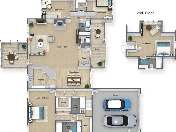 The Fairmont is a tasteful and very generous 3 bedroom, 2 full bath, 1 half bath home at 2,224 living sq.ft. with a large 2 car garage. As you walk up the steps to the covered front porch and through the front door you have an expansive open floor plan that encompasses the great room, formal dining room and kitchen. The kitchen offers a large “L” shaped kitchen with an angled peninsula, upper and lower cabinets, granite countertops and an appliance package and pantry. The large master bedroom is off to one side of the home and offers the master bath and 2 closets. The other side of the home has 2 bedrooms and a bath. Also on the first floor you will find the access from the garage, utility room and powder room. This model offers plenty of options to make this home your own such as an extra bedroom and bath.