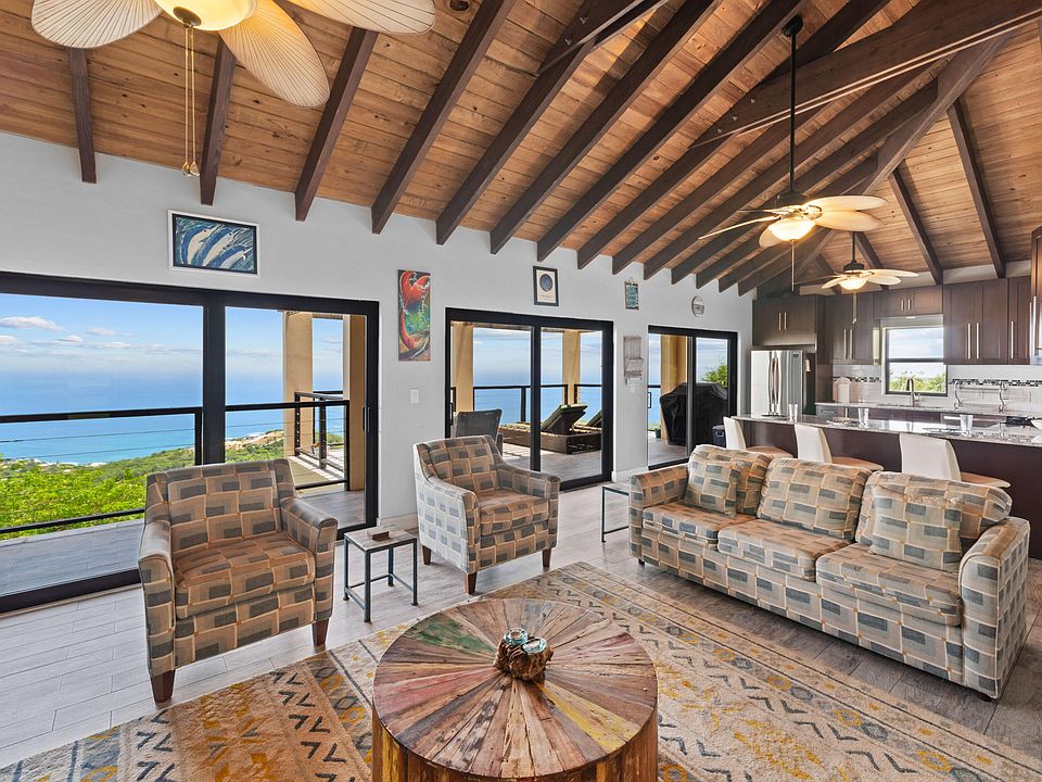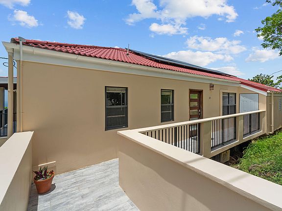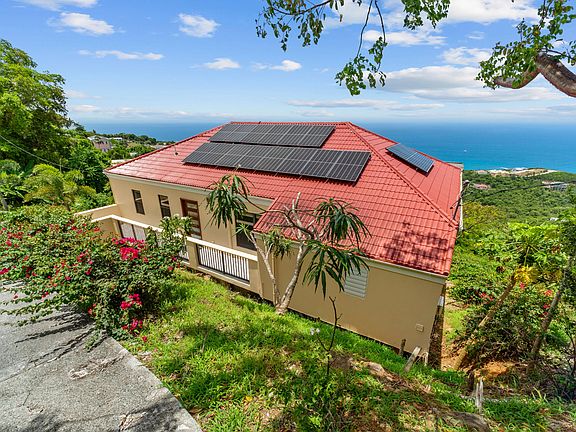 Southern Cross Villa. High on Hawk Hill with a view that goes on and on, this beautiful villa has fulfilled dreams as both a second home and a short-term vacation rental. Upper level offers three bedrooms and two full bathrooms with vaulted ceilings and a terrific porch for catching the sunset and al fresco dining. First floor apartment with private parking offers an additional two bedrooms and one bathroom with its own lovely outdoor area. Great location with Havensight a mere 7-minute drive one way and Red Hook 15-minutes the other way. Professionally landscaped and meticulously maintained, this beautiful turnkey home is an absolute must-see.