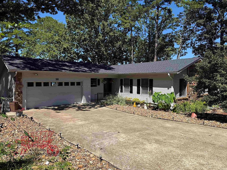 Tucked away in a quiet cut-de-sac, this beautifully updated 3 bedroom, 2 bath home offers stunning views of Lake Desoto and low maintenance living. Fresh paint and gorgeous new wood flooring throughout. The updated kitchen features granite countertops, stainless steel appliances, and a copper sink. Both bathrooms have been refreshed with new tile and granite vanities, and the cozy wood-burning fireplace adds the perfect touch for cooler evenings. Enjoy lake views year-round from the inviting Arkansas room, or step outside onto the deck that overlooks your private covered boat dock. The yard is designed for easy upkeep with zero scape mature landscaping, and a sprinkler system. A fenced 30X10 dog run is perfect for pets and the small workshop in the crawlspace makes for great storage space. Additional upgrades include a brand new roof (Sept 2025), new water heater (2024) making this home truly move in ready. This one won't last long-schedule your showing today and experience the beauty of lakefront living in Hot Springs Village.