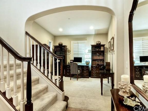 Must see- beautiful home in exclusive Canyon's Edge in Turtle Ridge. Located on preferred view & quiet side near Shady Canyon. The model home showed this plan built out as a 3 BEDROOM. This original owner now uses the downstairs room as an office, so it currently shows as a large 2 Bedroom PLUS 2 office home with 2 1/2 baths. Easy to convert back to 3 bedrooms. Turnkey with designer upgrades throughout. Ten foot ceilings, stone flooring, and Entertainer's kitchen featuring a builtin refrigerator, granite counters & Island, stainless appliances with 6-burner gas cooktop. Crown moulding throughout, along with central A/V in every room. Large Master w/soaking tub and separate shower, dual raised sinks and walk-in closet. Private back and side yards face lush fully landscaped hillside. Serene patio offers built-in gas BBQ, counter seating, fountain, and mature garden w/fruit trees. Community offers lovely pool and jacuzzi, as well as the security of a gated community and easy access to spectacular hiking, biking, open space preserve, and top-rated schools - incl. University High nearby, make this an opportunity to move into one of the best neighborhoods around. Easy to show-Call or text Jan Langford directly at 949-533-7337 for showing and gate access.