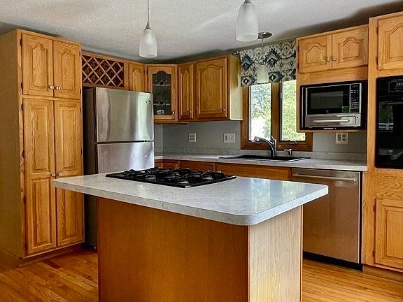 - Features: Flooring - Hardwood, Flooring - Wood, Countertops - Upgraded, Kitchen Island, Cabinets - Upgraded, Exterior Access, Lighting - Pendant, Lighting - Overhead