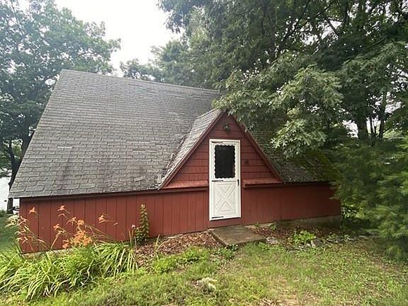 Highest & Best by Tuesday, July 28th, 2pm. ***Please see disclosures*** So much potential on Thompson Pond for this cute Bungalow. Great lot in a cove with approximate 50 ft. of frontage. Appears to have solid bones. Main level is framed for 2 bedrooms, kitchen, bath & living room with fireplace. Loft is framed on second level. Huge walkout basement with high ceilings and another huge fireplace. Roughed for a 2nd bath in basement. Electric is active in house. Cesspool on property & shallow well with non-potable water according to family members will not pass. CASH ONLY!!!