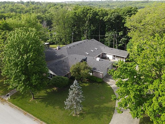 This expansive estate offers over 7,000 square feet of finished living space situated on a beautifully wooded 3.1-acre corner lot. Designed for both comfort and versatility, the home features four spacious bedrooms, two additional sleeping rooms, and a stunning living room with a wall of windows that bathe the space in natural light. Two cozy wood-burning fireplaces add warmth and charm, creating inviting spaces for relaxation and gathering. Perfect for entertaining, the home includes multiple catering kitchens, a media room, and a screened patio overlooking a luxurious swim spa. Four garages provide ample space for vehicles and storage, while a dedicated workshop and abundant storage areas add to the home's functionality. Surrounded by mature trees, this property combines privacy, space, and convenience, making it ideal for large families, multigenerational living, or anyone seeking room to spread out and enjoy.