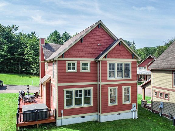 Welcome to this impeccably crafted 4-bedroom, 3-bath home in the desirable Silver Ridge community at Deep Creek Lake. From the moment you arrive, the home’s curb appeal is undeniable—classic craftsman-style architecture, a bold red exterior with stone accents, and a welcoming covered porch create an immediate sense of charm and quality. With four private deeded parking spaces located directly in front of the home, convenience meets comfort right at your doorstep. Step inside to discover a residence defined by craftsmanship and thoughtful design. Soaring ceilings and a striking stone fireplace anchor the open-concept living area, while rich wood finishes and upscale details add warmth throughout. The chef’s kitchen offers granite countertops, custom cabinetry, a stylish backsplash with under-cabinet lighting, and stainless steel appliances—all less than five years old and gently used exclusively by the owners, never as a rental. A large island makes the space perfect for both everyday living and entertaining. The main level shared bath has been beautifully updated, showcasing modern fixtures, stylish tile work, and spa-like finishes—including a brand-new stone surround and floor walk-in shower. The main-floor primary suite provides a private retreat with a spacious en-suite bath, while additional bedrooms and a second living area upstairs—with its own fireplace—allow plenty of room for family and guests. Outdoors, a private deck and hot tub—less than three years old—invite relaxation, surrounded by mature greenery that frames the property beautifully. With its combination of high-quality construction, updated features, and undeniable curb appeal, this home offers a rare opportunity in one of Deep Creek’s most sought-after neighborhoods.