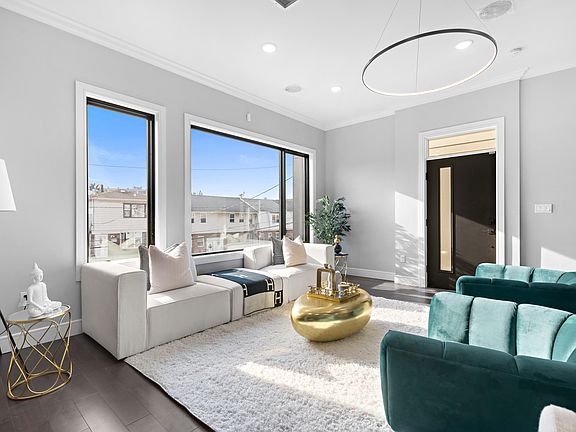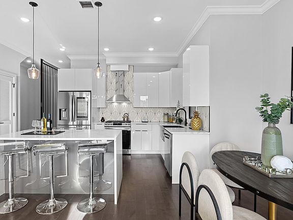 The wait is finally over! Welcome to 16 Skillman Ave, the most luxurious, talk of the town, brand new ground-up construction, now ready to accept offers! This signature luxury property, developed by NJ Developers and architected by Mukti Architecture, features unique and eye-catching, board and batten façade, for the first time in the heart of Journal Square, a business district, a residential area, and the transportation hub. This brand new 3 bedroom 2.5 bathroom smart home spans over a 25’x100’ lot, offering 1,725 square feet of open-concept living, with a state of the art Chef's Kitchen. This immaculate condominium features 10' ceilings, 7' solid doors, white oak hardwood flooring and oversized casement Pella windows to allow abundant natural light throughout the day. The impeccable European Style eat-in kitchen features white high gloss cabinetry with soft close, beautiful Waterfall Quartz Countertops, 5 burner gas stove with built-in range oven, hooded Exhaust for extensive cooking, luxury stainless steel appliances, including Wi-Fi & Bluetooth enabled Samsung refrigerator, Dishwasher, drawer Microwave, central Island allowing 3 – 4 people seating, spares no expense in this loaded kitchen. The master bedroom offers beautiful private 50 SQFT balcony overlooking the backyard, an ensuite spa-like bathroom with dual rain showers, and an expansive custom walk-in closet. This magnificent condo with carefully designed floor plan that rivals "Manhattan standard" luxury, also provides queen size second bedroom, and a third room to serve as a Home Office/guest bedroom. The second bathroom features, floating vanity, Smart mirror lighting and a soaking tub. The encompassed 458 SQFT of recreation room, a half-bath, mechanical, enclosed private fenced backyard featuring approx. 530 SQFT of outdoor space is refreshing in Journal Square. This Smart Home creates ease of living and efficiency through a central HVAC system regulated by the Nest thermostat. This smart home features Ring Doorbell Security, 4 outdoor Cameras with video recording, 6 Built-in Speakers, and Wi-Fi enabled lights, integrated via Google Smart Home Hub. The unit comes fully equipped with built-in laundry room featuring Samsung washer and dryer and includes one tandem garage parking space. Above all, Set in the heart of Journal Square, two blocks away from the vibrant and Newark Ave, a street full of restaurants and grocery stores, will never let you run out of food again. Whether it be evening walks for an amazing dining experience, or taking kids to public schools, or an emergency medical need for a hospital, or banks, or churches, everything is at your doorsteps. Buy while you can, and be prepared to be blown away from the evolving Journal Square, the midtown of Jersey City, surrounded by the redevelopment mid-high rise multi-million-dollar buildings, before there is no more land to be found. Maintenance is TBD but typically includes cold water, sewer, property insurance, snow removal, trash removal, common area utilities. Eligible for 5-year tax abatement!
