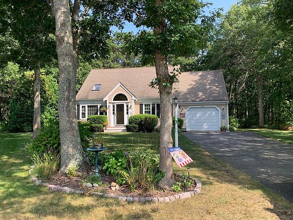 Welcome to this Charming Cape in Cobblestone Landing! Bright and open cathedral living room, 3 bedrooms, 2 baths, good size kitchen with breakfast bar and dining area has wood floors, slider to deck overlooking private backyard. Two bedrooms upstairs, one with cathedral ceiling and 3 closets. First floor laundry, central air, 1 car garage, irrigation, outdoor shower, young windows along front of house, new vinyl garage door, unfinished basement is great storage or future finished space! Town Sewer. Association fee is 110 per month giving you access to a lovely clubhouse with indoor pool, sauna, fitness room, tennis and pickle ball courts. A wonderful place to call home located on the Hyannis/Centerville line, close to everything.