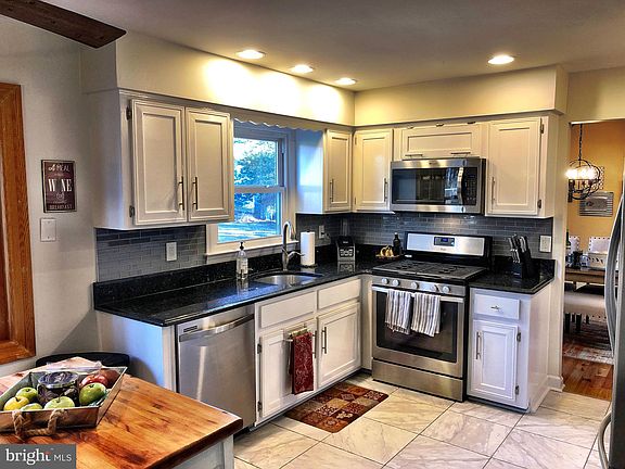 This absolutely gorgeous 4 bedroom 2.5 bath Colonial sits pretty at the end of a private cul-de-sac! Elegant tile welcomes you beyond the lead glass designer front door. The formal living room/dining room combination feature newer solid oak flooring, a spectacular wooden Anderson bay window, crown molding and a beautiful dining chandelier. The upgraded kitchen delights with it's brilliant black granite counter tops, gray subway tile back splash, white cabinetry, granite breakfast bar and stainless steel appliances. Step down to thenice sized family room with laminate flooring, wood burning stove with stone wall behind and a beautiful 12' Anderson patio window filling the room with natural light! Main floor rounded out with an updated 1/2 bath off the foyer. Heading upstairs you will find a master bedroom with large walk in closet and ceiling fan, along with 3 other gerously sized bedrooms with lighted ceiling fans and a full bath. Full finished basement with a full updated bath is wonderful entertainment space. Speaking of entertaining, your back yard is a wonderful oasis, with it's brand new heated concrete pool (replaced in 2018), 27X21 light up paver patio, large shed, play set, filtered fish pond and underground sprinkler system. Newer roof and 2 car attached garage with ample room for storage to top it off!