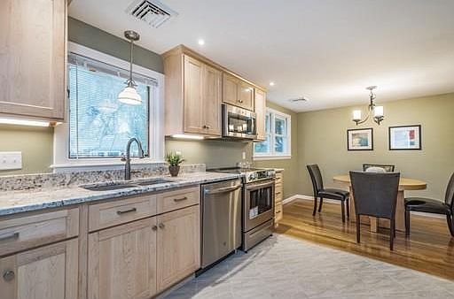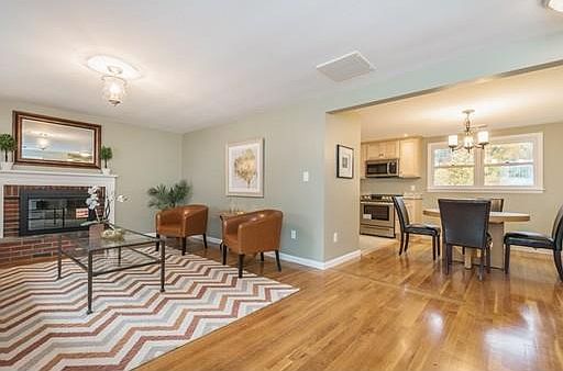 Brilliantly restored and move in ready! This redesigned midcentury home truly has it all! Upscale eat-in kitchen with soft close Shaker style cabinetry, grayscale granite counters, new ss appliances. Fireplaced LR features gleaming HW floors and large front window. Huge breezeway off kitchen steps down into tiled sunroom surrounded by tranquil back yard privacy! Master suite has hw floors and private half bath. Two other BRs and designer bathroom with upscale finishes complete the 1st floor. And the lower level is sure to surprise! ClearGress translucent bulkhead allows natural light to flood into a huge family room already wired for flatscreen TV! Lower level also features tiled laundry room, craft area and handsome engineered flooring. Oversized 2 car gar with new quiet-close door. Brand new forced air system for heat/AC! Exquisite curb appeal on level, corner lot in established neighborhood of well kept homes. Close to highways and all the wonderful amenities Holliston has to offer!