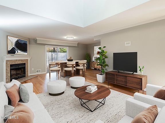 *UPDATED FOR THE NEW OCCUPANT* This spacious 2 bed, 2.5 bath End Unit at Spring Meadows is ready for immediate occupancy. Enter through front door or direct access garage into the welcoming foyer with adjacent large Living Room/ Dining Area with gas fireplace & sliders leading out to your own fenced in patio. EIK features a light filled Breakfast Nook. Upstairs boasts a Primary suite with private balcony, a second full bath and closet laundry area, with new washer/dryer. Refinished Hard wood floors throughout and freshly painted walls. New gas stove and refrigerator to be install next week along with new countertops, backslash and sink. Ideal for commuters-minutes to/from the GSP, Rt. 18, outlets, Jersey Shore Medical, dining & shopping and best of all Jersey beaches!