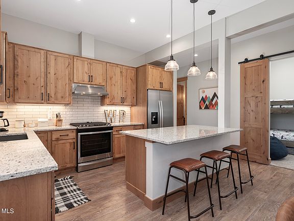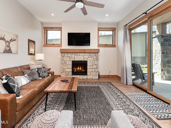 Gorgeous ground floor condo steps from the Lift Bus Stop and short walk to breweries, shops and grocery. Vaulted ceilings and loads of windows make this unit airy and bright. You'll love the spacious outdoor space directly out your patio door with room for seating, the gas grill and hot tub showcasing wonderful views. Third bedroom is non-conforming; great space for bunk beds, an office or den. Kitchen features 42'' cabinets, high end appliances and a separate island for even more seating. Friends and family will love to gather around. Move in ready - this condo is being sold fully turnkey and is calling you for summer! It even comes with a detached garage and separate ski locker for all your summer and winter toys.