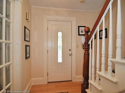 Great beginnings or downsize property. Well maintained home with updated cherry kitchen, corian island with room for breakfast stools, CT, wood floors, ceiling fans, partially finished basement currently used for toy area. Master enjoys two large closets a treat in this vintage home~ Central air on second floor for those hot steamy nights. Charm and warmth throughout. Front porch to sit on in your lazy chair and read the paper or enjoy a glass of lemonade... deck in back for summer cookouts overlooks fenced back yard with ample space to play games, swing, and have a garden or turn your dog loose. Additionally there is a shed behind the detached garage.