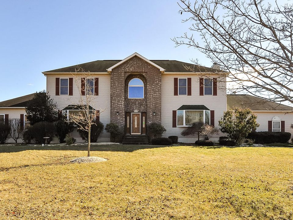 Best value in desirable Upper Freehold private neighborhood. Over 3,500 sq. ft., beautifully updated 5bdrm, 3.5 bath Colonial, on a 2+ acre lot. Hardwood flooring throughout. Large eat-in kitchen with ceramic tile flooring, stainless appliances, and glass backsplash. Complete in-law/au pair/guest suite with flexible floor plan, easily convertible to any family space design. Bay windows in sprawling family room with gas fireplace. All 3.5 baths recently updated. Beautiful French doors and custom cut glass doors.Spacious bedrooms. Gracious master bedroom featuring master bath with a soaking tub.