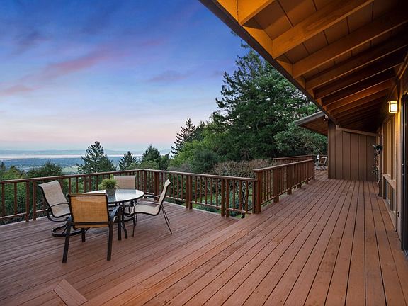 With a stunning view overlooking Woodside, Redwood City, San Francisco Bay and Mt. Diablo in the East Bay, 16 Stadler Drive is a haven in the hills. Located in the heart of Skywood Acres, a neighborhood of substantial homes on large lots, this home is shielded from road noise from 84 and Skyline, so the only sounds are from nature. A trailhead into Wunderlich Park is 300 feet away, Woodside and 280 are less than 10 min away. The interior of the house does not disappoint, with an open floor plan, high ceilings in the public rooms, and views from all the bedrooms. The kitchen is open to the family room and a partial wall separates the living room and dining room. The kitchen and baths have been updated with high end custom finishes, cabinets and curbless walk in showers. The master features a dressing room with organizers and a heated floor in the bath. A detached studio with vaulted ceilings, skylights and a wall of glass maximizing the view sits at the end of the house.