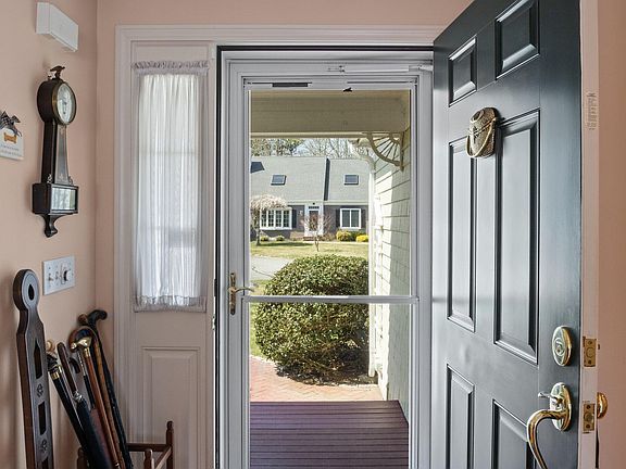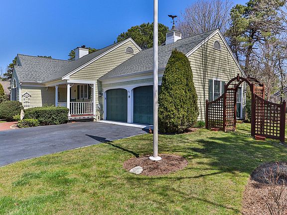 Fabulous one level living in Nantucket Village Community. The Great room dining room combination is spacious and welcoming,featuring cathedral ceilings, an impressive fireplace with custom built-ins, hardwood floors. direct access to the deck and peaceful yard, complete with an outdoor shower and Koi Pond. Pristine roomy kitchen has white cabinets, large breakfast bar, white appliances (4 years old) and 2 large casement windows which overlook the front porch. Large primary bedroom boasts cathedral ceilings, private bath, walk-in closet and sitting area. The 2 other bedrooms are cheerful and bright, one of them featuring a Palladium window and cathedral ceiling is an alternative to a den/home office. There is a media room, home office and full bath in the basement. Roof and heating/AC is only 5-7 years old. The Community clubhouse offer many amenities ie. heated pool, tennis, exercise room, and much more. This location is on Town Sewer and close to beaches, restaurants, shopping and all Cape Cod has to offer.