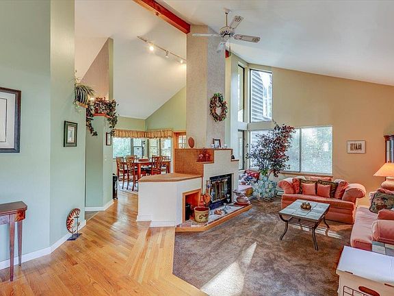 Come in & enjoy this wonderful 3 bedroom, 2 bath one level contemporary with lots of great features. Vaulted ceilings throughout, sunken living room with wood burning fireplace with built in bench & plenty of windows, spacious kitchen with extra cabinets, exposed beam, built in shelves & pass through to formal dining. The sunroom is surrounded by windows & 2 skylights with slider to back deck, primary bedroom with double closets & private bath. Finished lower level - perfect for family room, large unfinished area with laundry & furnace. Host barbecues and entertain on the back deck surrounded by perennials & trees for privacy backing up to common land. Minutes to schools, Jericho Village & walking path with easy access to neighborhood towns, ski areas & Burlington.