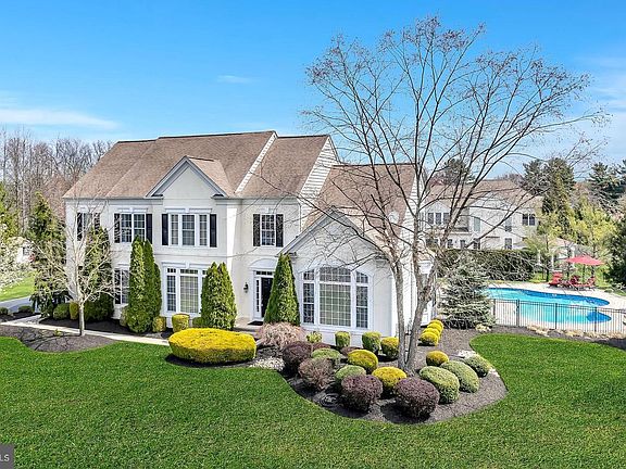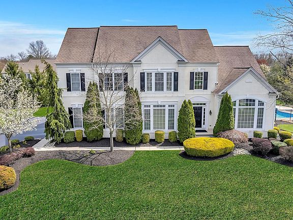 In Combs Farm, one of Robbinsville's most beautiful and desired communities, at the end of a cul-de-sac, on a premium lot, stands this beautiful colonial welcoming you with a large front yard and exquisite mature landscaping. With almost 4000 square feet of livable space on the first and second floor, and an additional 2000 square feet in the finished basement, you will have more than enough room for all of your extended family and friends. Travel through the front door and enjoy a 2 story foyer, a grand staircase, beautiful hardwood floors and elegant molding. To the right, a formal living room that flows seamlessly into the oversized dining room. To the left is a beautiful light filled office and a newly renovated half bath. As you continue on, you will pass a custom mud room leading to the three car garage and then a perfectly placed butlers pantry to help with all of your entertaining. At the back of the house is the two story family room with a gorgeous double facing gas fireplace, a second back staircase and a beautiful all weather solarium. The main floor is rounded out by the oversized kitchen with an enormous island, granite counters and dining area enhanced by a wall of windows looking out into the back yard. Back in the foyer, the grand staircase leads upstairs to the 4 bedrooms, 3 full bathrooms, storage closets and the second back staircase. The primary bedroom has stunning coffered ceilings, a gorgeous oversized full attached bathroom and his and her walk in closets. The second and third bedrooms are Jack and Jill suites, sharing a full bathroom, and the fourth bedroom has its own full bathroom. Most of the closets in the house have been professionally fitted with closet organizers. The home also has custom window treatments throughout that are included in the sale. The finished basement is bright and carpeted and painted in a neutral color. There is also a large unfinished space for storage and can also be transformed into a gym or another type of space to your liking. In the private back yard, you will be stunned by the well thought out expansive paver patio. The gorgeous in-ground pool is the highlight of the yard and is surrounded by multiple lounging areas, mature landscaping and a wrought iron fence. The salt water pool is self-cleaning and heated for use in the colder months. This home is very close to the Hamilton train station, 195, 295, 95 and Route 130. Getting to Princeton is a quick 15 minutes, and Trenton airport is only 20 minutes away! This home is in the highly rated Robbinsville school district! This one is a beauty and will not last!! *This home has a zip code of 08690 and can show up as Hamilton, but it goes to ROBBINSVILLE SCHOOLS and is part of Robbinsville. *Sellers are selling much of the furnishings and are happy to discuss details with potential buyers.