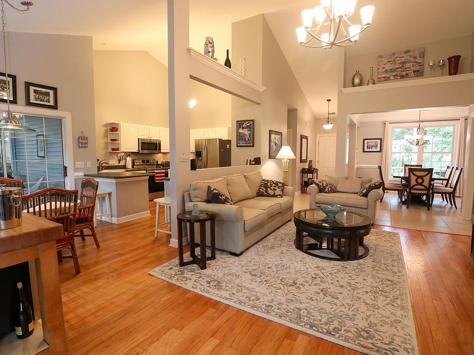 Lovely York model that is bright and modern. Kitchen opens to Great room and 13x15 tiled Sunroom. Hardwood floors, white cabinets, screened porch and fenced yard on beautiful 7.5 acre lake!! (909113)