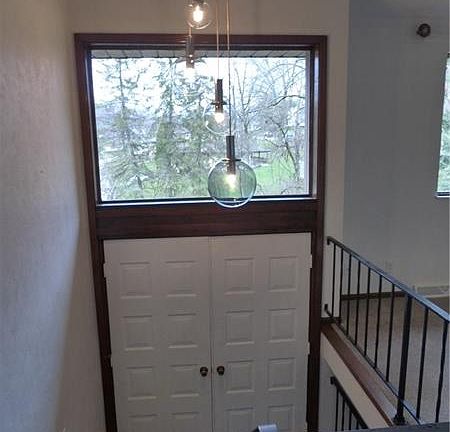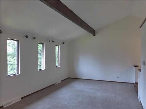 Terrific split entry on a double lot that features a neutral decor with brand new carpet and vinyl flooring. Freshly painted inside & outside cantilever. What a spacious and open floor plan! Large room sizes and 3 full baths. The open kitchen and dining room steps down to a spacious living room with soaring beamed ceilings. French doors from the dining room lead to a patio and a well maintained yard. A finished basement on the lower level has a brick, wood burning fireplace with a mantle. There is an additional entertainment room that is plumbed for a wet bar. The lower level also boasts a bedroom and full bath for an in-law or teen. The laundry and oversized one car garage with keyless entry finishes that space. New heat pump installed 2014. New 40' french drain and outside drainpipes. The home has a large concrete driveway with an additional parking pad and concrete walkway.