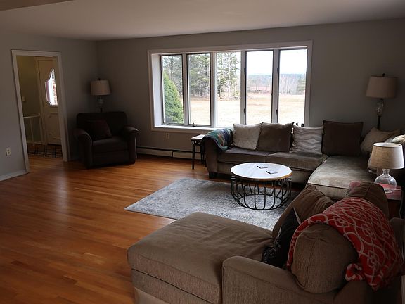 Stunning views from this home in great location in Holden. Home is 15 min to Bangor or 20 min to Ellsworth. Sits on oversized 5.88 acre lot and nicely manicured lot. Home has attached 2 car garage, detached 2 car garage and small pole barn. House has mudroom with laundry off of it along with heated 2 car garage. Main floor has large kitchen with breakfast bar which is open to Dining Room and large Living room. No carpets anywhere as home has wood floors thru out. Lower level has large family room, bedroom and half bath plus good size unfinished basement as well. Upper level has master suite with closets and full master bath. Also has 3rd bedroom and either office or small 4th bedroom. Home has paved driveway and owner is going to pay for landscaping and lawncare. This is available for lease Sept 2nd. Price is $2950 for single or Double occupancy and $3100 if more people with tenant paying for utilities (owner is willing to have lawn service paid by them so ask for details). Homes are hard to find so don't wait on this one. Holden is high school choice town and pets considered so ask - visit RentBangor .com to view a walk through video 1 year lease and longer tenants welcome