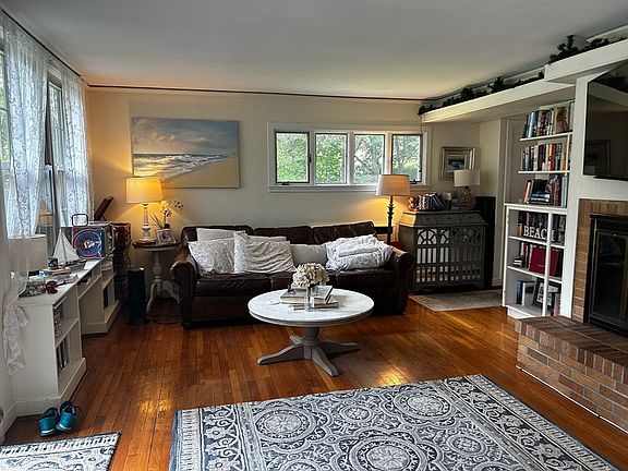 Coastal Charm! This single-level cottage with deeded beach rights is nestled on a dead-end street just blocks from Stoneledge Beach. Offering timeless coastal character and a prime location, the home features hardwood floors, two spacious bedrooms, ample closet space, and an open living/dining area anchored by a cozy fireplace. A generous basement provides additional storage.Outside, enjoy a lovely patio, mature landscaping, a shed, and a convenient carport. A wooded path connects Upper and Lower Stoneledge Road, offering easy access to the beach.Whether you're seeking a summer retreat or a year-round residence, this property offers comfort, charm, and a strong rental history.
