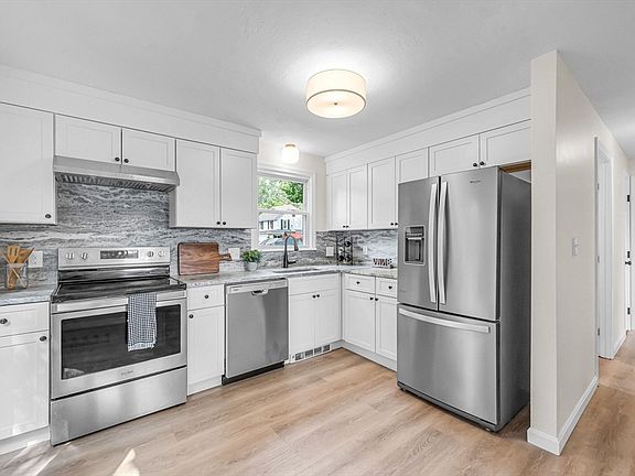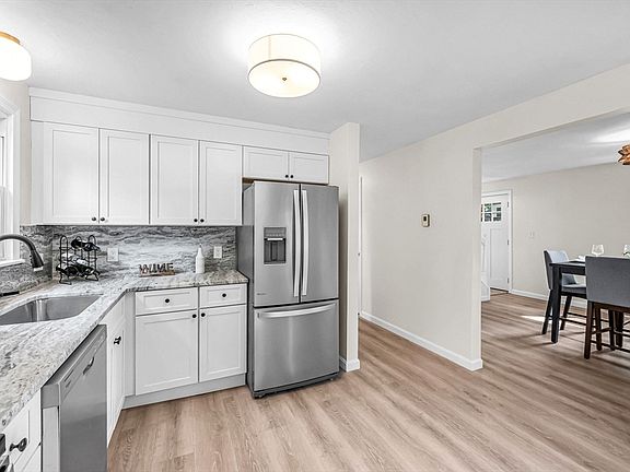 This newly renovated cape home is so attractive, in almost brand new condition!. The heart of this residence is undoubtedly its kitchen, a space designed to inspire culinary creativity. The new shaker cabinets provide a classic touch, while the stone countertops and matching stone backsplash offers durable, elegant surfaces. The home includes three bedrooms and one full bathroom, providing comfortable accommodations within its 1542 square feet of living area, which includes a partially finished basement. The bathroom is also new and the beautiful tile tub surround is sure to please. A deck extends your living space outdoors, perfect for relaxation and entertaining; the fenced backyard offers privacy and security, and the shed provides valuable storage space. This home could be a candidate for solar, which could possible give you free electric heat, hot water, and all your other electric usage. An amazing home, not to be missed!