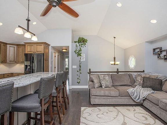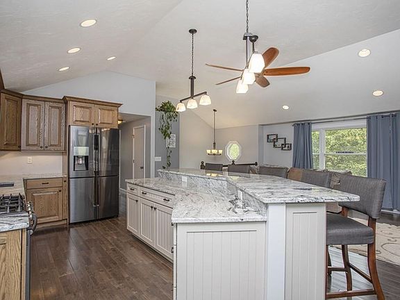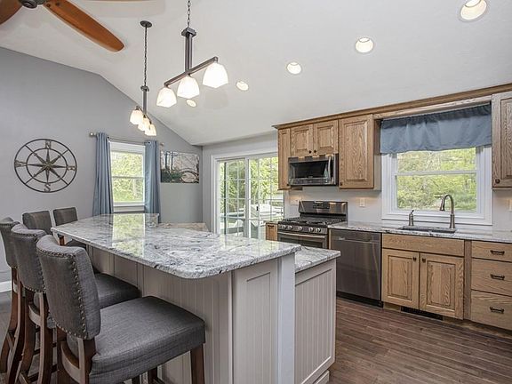 - Kit Dscrp: Main Level, Flooring - Hardwood, Countertops - Stone/Granite/Solid, Cabinets - Upgraded, Deck - Exterior, Ceiling - Cathedral, Kitchen Island, Stainless Steel Appliances, Open Floor Plan, Recessed Lighting, Slider, Gas Stove, Lighting - Pendant