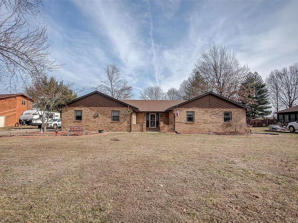 Welcome home to this incredible home! This 4 bedroom, 2.5 bathroom ALL brick ranch is ready for you to call home. The kitchen is recently remodeled featuring NEW Corian counters, 3 year old stainless steel appliances, & a large farmhouse sink. All bedroom have NEW hardwood flooring. The DRY Basement features a LARGE finished area & a LARGE unfinished storage area with built in shelving for all of your storage needs. As you enter the backyard secluded paradise you'll find a pergola with lights, fans, tv mount, and grilling pads to make for the perfect relaxation spot. The 1 year old hot tub is negotiable. Continue further onto the 3/4 acre lot and you will find an inground salt water pool with new motor & primary filter, and another pergola to host all of your backyard oasis fun. Finally, this amazing home has no HOA. Sellers have extended the driveway to make the perfect spot for a boat or RV storage. Make your appointment today & don't miss your chance to own this exclusive home.
