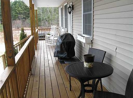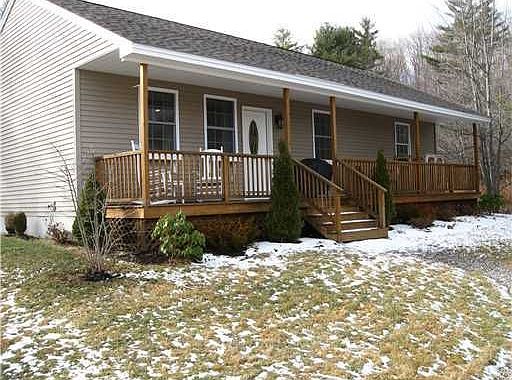 Spacious open concept Ranch w/cathedral ceilings. Built in 2008, it's still like new! 3 bedrooms, 2 baths, master bedroom w/bath &full basement w/room for expansion. Situated in a private setting, bordered by woods. Large farmers porch, close to I-95.