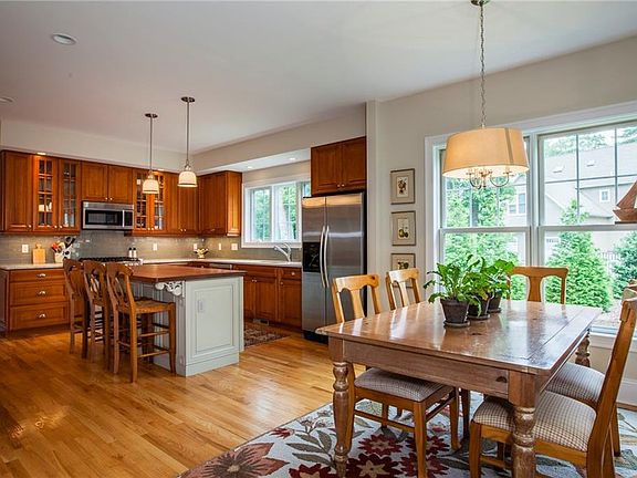 MINT! Stunning 2011 farmhouse style Colonial in very desirable, cul de sac neighborhood. The first floor is flooded with natural light, and offers warmth and charm with a covered front rocking chair porch, built in bookcases in both the formal living room and the family room and a gas fireplace. The kitchen is a custom designed delight with granite and a wooden topped center isle, and breakfast area. The formal dining room is conveniently located through the Butler's pantry from the kitchen, and opens to both the family room and living room. Upstairs is a surprise, with an open library at the top of the stairs, two bedrooms, and a Master suite behind French doors with gorgeous bath featuring tub and tiled shower. The basement, which could be easily finished, also brings in natural light with a wall of windows facing the side yard. A lovely, large bluestone patio, screened in porch, and deck make outdoor entertaining a must on this very well situated lot at the end of the cul de sac. Natural gas heat and two car attached garage.