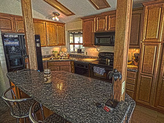 Lots of great features in this home! The front of the home is an open great room with nice kitchen and picture windows. The layout of the kitchen is perfect for entertaining with a large island bar and is open to the roomy living space. The appliances are updated and all the bedrooms are good size. The master is really spacious with a remodeled private bath, tiled walk in shower and nice vanity. The back entrance leads to a large enclosed bonus room/deck with windows and door out to the spacious fenced back yard that offers a cement patio with built in seating. Storage shed, 2 car garage and more. Lot Rent: 656/mo | Includes: None