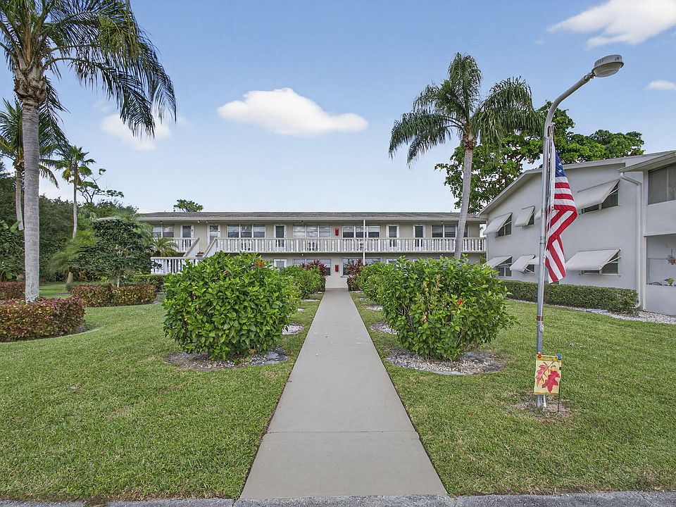 Bright and comfortable one bedroom, one bathroom second floor condo in the desirable 55 plus community of Century Village. Enjoy tile flooring throughout, one wall mounted AC, and a screened balcony overlooking a peaceful garden setting. Just steps from the community pool, this home offers exceptional convenience. Perfect for year-round living or investment thanks to strong rental demand. Century Village provides gated security along with a clubhouse, fitness center, pools, tennis, pickleball, theater, walking paths, and a courtesy bus. Cable and internet are typically included, making this an excellent value in West Palm Beach.