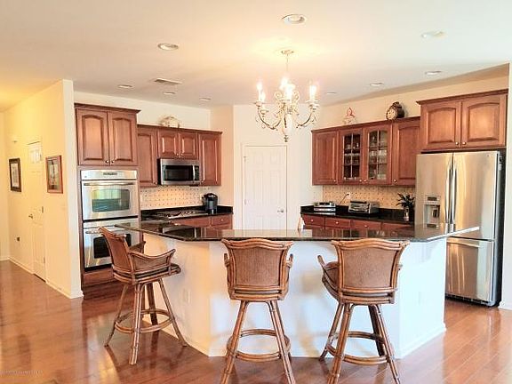 This highly upgraded builder's spec model home is located in the newest section of desirable Four Seasons at Metedeconk. It features gleaming walnut toned hardwood floors & upgraded ceramic tiles throughout. top of the line kitchen boasts 42" walnut toned raised panel cabinetry w/crown molding,Granite countertops & tumbled marble backsplash w/inyx accents. Upgraded full GE S/S appliance package including double oven, french door frig as well. U-shaped center island provides views of the open concept fl plan. DR features trey ceiling. LR has windows topped with custom plantation shutters & sliding door leads to a private retreat..a LARGE EP Henry landscaped/pavered patio. Large storage room over 2-car garage.