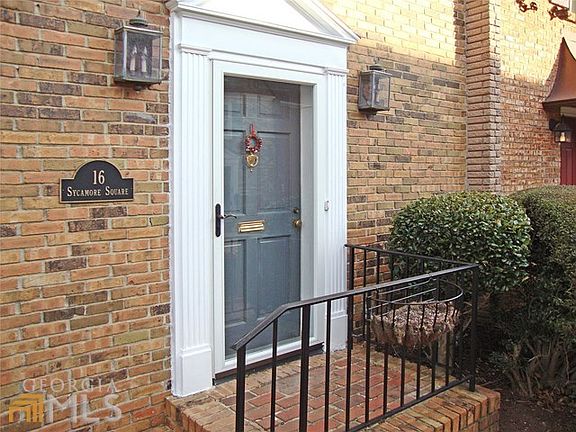 Brick, end unit in courtyard area. Popular Sycamore Square, a block from Marta, and wonderful Decatur venues. Only one set of stairs, walk in closets in both bedrooms, engineered hardwood flooring throughout, tile floors in baths & kitchen, fireplace. Extra storage & 2 large closets in 2 car garage. Delightful courtyard and patio between house and garage. Great neighbors, active home owners assoc. who care for the complex.