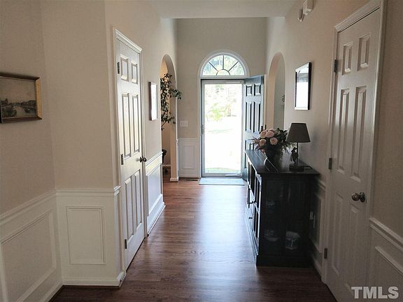 Experience SW Durham at its finest! Gracious cul-de-sac home backs to landscaped and wooded views with water views to the side. Beautiful hardwoods throughout the first floor. New carpet in 2016. Granite countertops in this chefs kitchen includes refrigerator, dishwasher, gas range leading to deck AC units installed 2016. Window blinds in 2017. Remote controlled gas logs installed 2017. Separate garden tub and shower in master. Master sitting room. Trey ceilings and more. Southpoint, RTP all close.