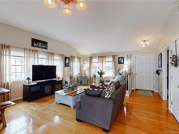 Exceptional ranch style home in great cul-de-sac neighborhood. Bright, open floor plan features large living and dining areas, kitchen, two large bedrooms, 2 full baths, first floor laundry. The beautifully updated kitchen has quartz countertops, farmer's sink, black stainless steel appliances, and a breakfast bar. The master suite has a walkin closet and a full bath (handicap accessible) with double sinks and a jacuzzi tub. Sunny great room has lots of windows and southern exposure. Other interior ammenities include custom hardwood flooring, central air, recessed lighting. The oversized 24x28 garage has heat and air conditioning, and a large workshop area. This lovely property features a Kloter Farms gazebo with power and cable, large composite back deck, perennial flower gardens, and a paved driveway. Private well, city sewer, underground utilities. This home is in immaculate move-in condition, pride of ownership shines throughout!