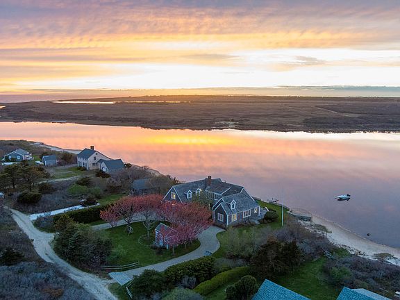 Sunrises and sunsets are on full display over the pond and Sanford Farm from this stunning property. The sounds of Cisco waves, the gentle lapping of Hummock Pond against the shore, and the abundant big sky views make it easy to slip into serenity. And, when you are ready for adventure, a private dock affords a new way to take in your surroundings and allows for long summer days exploring the water or jetting off to the stretch of sand separating the pond from the ocean. This property is truly one-of-a-kind, offering a quintessential Nantucket setting few others can offer. First Floor The water and conservation views are immediately in full view thanks to the bright, open-concept floor plan and numerous windows spanning the first floor. A welcoming and spacious central living area becomes even bigger with the glass sliding doors that open to the back deck with Hummock Pond at the back door and Sanford Farm just beyond. An adjacent dining area and kitchen offer the perfect spaces to take in the exceptional scenery while gathering over morning coffee or evening meals. A private first floor bedroom suite with vaulted ceilings, built-in desk/office area, dressing room and spacious bathroom with large soaking tub boasts stunning vistas from every nook. A den with pocket doors and a full bathroom provides an ideal spot to tuck away or serves as overflow space to accommodate guests. A mudroom with access to the outdoor shower and the heated two-car garage completes this spacious floor. Second Floor The second floor includes two spacious bedroom suites, each with vaulted ceilings and private bathrooms. The western-facing suite enjoys front row pond views, 180-degree vistas over Sanford Farm and distant ocean views from its numerous windows and private balcony. A central living room also enjoys fabulous views while offering another place for relaxing. An office area offers a space to conduct work while providing views of the head of the pond. Other Structures Storage shed.