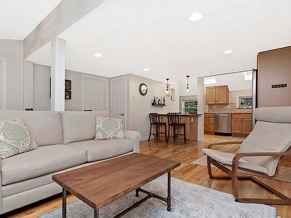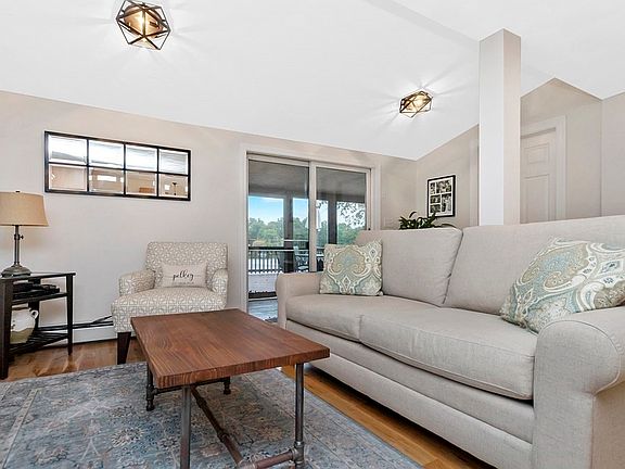 This charming two bedrooms plus den home is nestled right on Rock Pond! Just past an enclosed entryway, enter into a comfortable living space overlooking Rock Pond. The kitchen is fully equipped with full-size stainless steel appliances, granite countertops, travertine tile backsplash, a built-in eating table with extra storage and large skylights offering a considerable amount of natural light. A great size second bedroom, large full bath and nice size den finish off the first floor of this home. Upstairs is the master suite with endless water views, a spacious master bath boasting extra storage as well as a washer and dryer. Off of the living room, head outside to a screened-in porch and a large deck featuring a nice sitting area as well as a granite bar that is ideal for entertaining in warmer weather. Don't forget your own private dock off your backyard to enjoy the gorgeous summers on the pond. Other features include a large shed. This is a can't miss home and location!