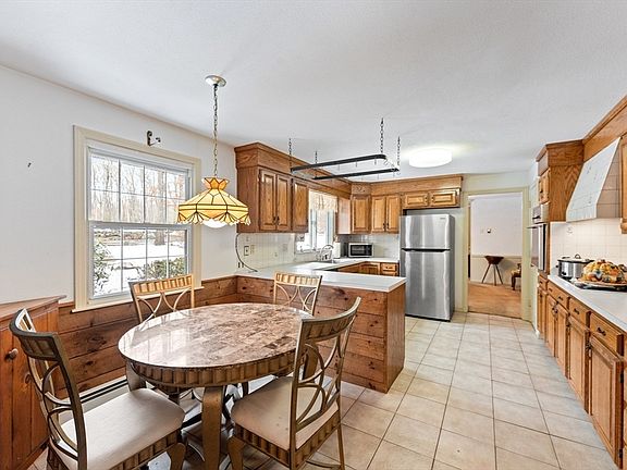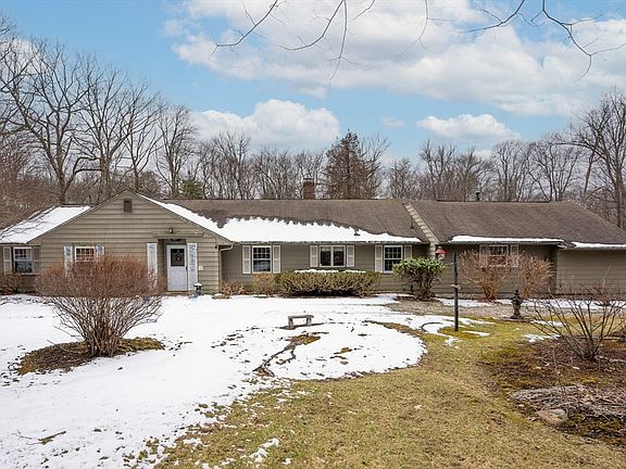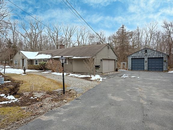 A little TLC and you've got it made in this custom built 1960's Ranch boasting over 1,850 sq ft of living & situated on an awesome 5 acres! Fully applianced Kitchen with loads of cabinet space, built-in oven, countertop range, SS refrigerator & informal dining. Backyard views from all main living areas, recessed lighting, 2 bay windows, formal Dining Rm, fireplaced Living Rm with custom built-ins and adjacent Family Rm with woodburning stove. Three spacious bedrooms including Master Bedroom w/Master Bath & sliders to patio. Main family bath w/skylight, cathedral ceiling & soaking tub. Sunroom, 1st floor laundry w/half bath, plenty of closet space & oil baseboard hot water heating system. Heated 2 car attached garage with work area plus 2 car detached garage and 10+ parking spaces.