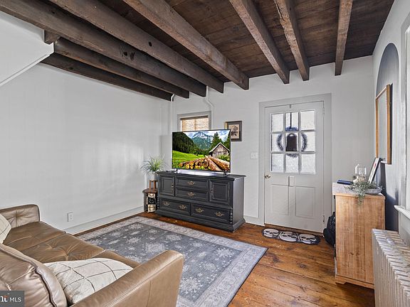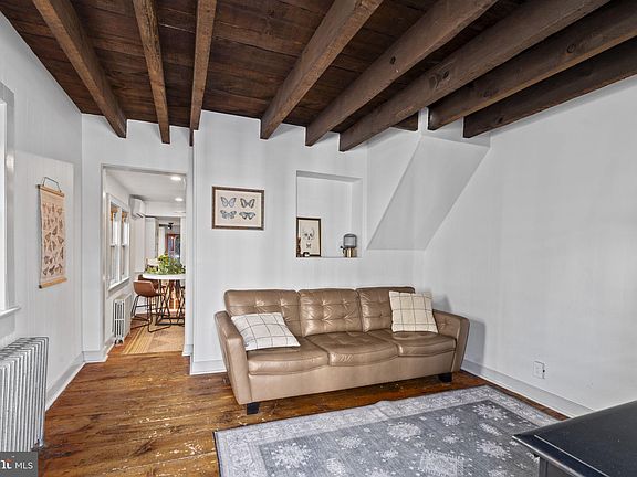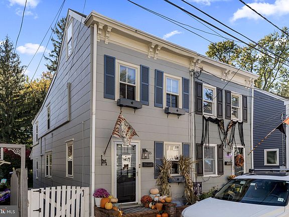 Charming, cozy & well-appointed: Welcome Home to 16 Thompson St. Located on Bordentown's highly-sought, famous Halloween street that embraces a shared community theme each year. Pulling up you're sure to notice the calm, quiet nature of the area. Entering the home you are greeted with a living room with exposed beams and gorgeous original hardwood floors. You then step into the dining room/family room combo right off the kitchen, complete with a cozy brick fireplace. The kitchen is updated with an all new stainless steel appliance package, added lighting & an under sink reverse osmosis water filtration system. There is a full bathroom on this level as well with tasteful fixtures & updates. Upstairs you will find 3 bedrooms and another full bathroom. There is plenty of closet space for storage as well as a fully waterproofed basement for additional storage. Laundry is located in the basement. There are mini splits throughout the home that offer comfort. Out back is a fully fenced private oasis with covered concrete patio, space for gardening & room for activities. There is an additional storage shed in the back for your outdoor storage needs. Walk to local shopping, dining & entertainment. There is a park right around the corner for the little ones to enjoy. Don't delay on scheduling your showing, this one will not last.