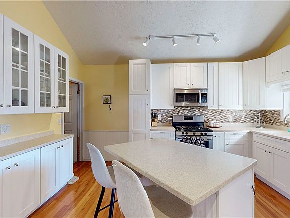 The home is move in ready and features a new roof in 2022 with transferable warranty, new laminate flooring throughout the 2nd floor, 1st floor laundry, and a great 1st floor layout for family living or entertaining. The double lot yard with plenty of room for gardening and Carriage house offers many possibilities to enjoy the spectacular Spring, Summer and Fall of Western New York.