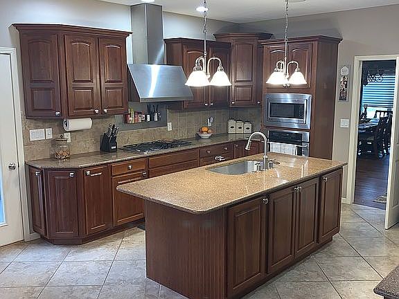 - Kitchen Details: Disposal, Built-in Oven, Hood, Eating Bar, Kitchen Island, Refrigerator, Microwave, Eat-In-Kitchen