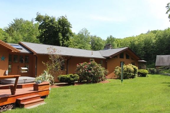 Extraordinary property located in great commuting location. This Contemporary Ranch has it all. You never need to leave home, you're on vacation all the time. Located on 9 acres and abutting town land and trails, this home has a private setting. Boasting 3-4 bedrooms, 3 full baths, 2 stone fireplaces and 2 woodstoves - master suite, private cedar deck. This home has as much to offer on the outside. The 4-season porch has a woodstove-cathedral ceiling and leads to a gunite pool and cedar deck with hot tub. Family Room plumbed for wet bar and also has a wine cellar to hold 2000 bottles. There is a 4-stall barn with heat, water and electricity, turnout area. On the other side of this well landscaped property is a fully lighted 30x50 stone dust riding arena with a view deck. Greenhouse for the gardner Huge fenced garden area, 20x30 or for goats, chickens, etc. Relax and Enjoy!