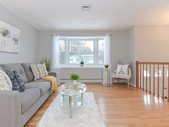 Located on sought after cul-de-sac street sitting proudly on level .37 acres. This home features 3 generous size Bedrooms and 2 full Bathrooms. Hardwood flooring throughout Living Room, Kitchen, hallway and stairs. Sun-filled Living Room flows into eat in Kitchen with breakfast bar. Slider to deck overlooks amazing back yard. Lower level finished and waiting to meet the needs of your family that features brand new carpet, a fireplace for ambience and extra warmth on those chilly nights plus desired Full Bathroom with walk in shower. Separate laundry/mud room that lead into one car garage. Central Air - check! Town water â check! Town sewer â check! SELLER WILL ENTERTAIN OFFERS BETWEEN $374,900-$424,900.