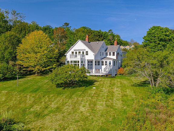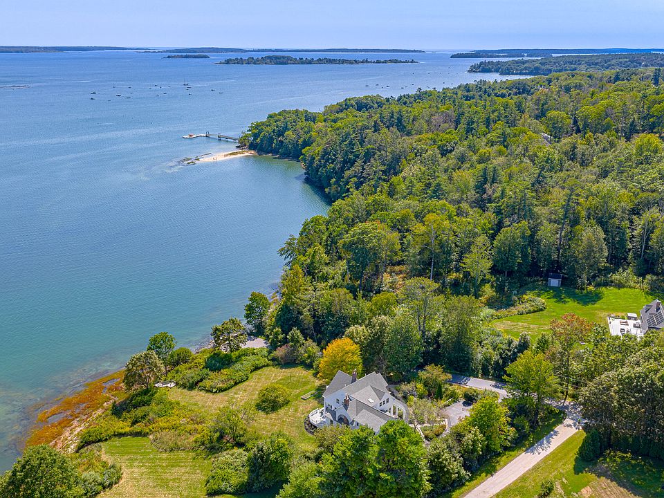 Newly renovated throughout, Sixteen Town Landing Road in Cumberland Foreside is a Shingle-Style sanctuary set on nearly an acre of private waterfront where the lawn rolls to the sea and the horizon stretches wide across Casco Bay. Here, sailboats dot the water, gulls wheel overhead, and the scent of salt air drifts through perennial gardens and fruit trees that frame the home like a seaside painting. Inside, sunlight dances across curved walls and intricate moldings, filling each room with warmth and endless ocean views. The chef's kitchen, complete with new stainless steel appliances, marble counters, and refurbished cabinetry, invites slow mornings, lingering over coffee in the glass-wrapped breakfast nook as the tide comes in. As the day melts into twilight, the windows glow with the last light of the sun, casting reflections of the water across the room. Evenings are made for the soft flicker of the gas stove in the den and dinners that linger late into the night in the formal dining room. Upstairs, four serene, newly renovated bedrooms and three baths provide a private escape, including a dreamy primary suite with its own balcony, perfect for watching the first blush of sunrise over the bay. A versatile bonus room offers space for a fifth bedroom, media room, or office with a view. Multiple decks and an expansive lawn set the stage for summer lobster feasts, sparkling tented soirées, and impromptu soccer matches at sunset. Stairs to the water offer easy access to launch a kayak, paddleboard at dawn, or swim under a rising moon. This magical property is minutes to the town beach and dock, Cumberland's award-winning schools, shopping, and commuting, while being just 15 minutes from Portland's vibrant arts and dining scene.